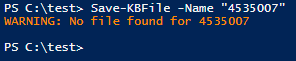 I came across an issue while using it though. I would an error almost every other time I ran the function. “No file found for $name” ($name being the KB number I wanted to download), as shown below;
