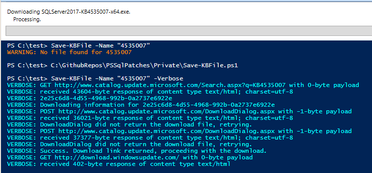 I was recently working on a way to use PowerShell to download SQL Server patches automatically. I came across a great function by Chrissy LeMaire (creator of the excellent dbatools module), called “Save-KBFile”, on Github here.